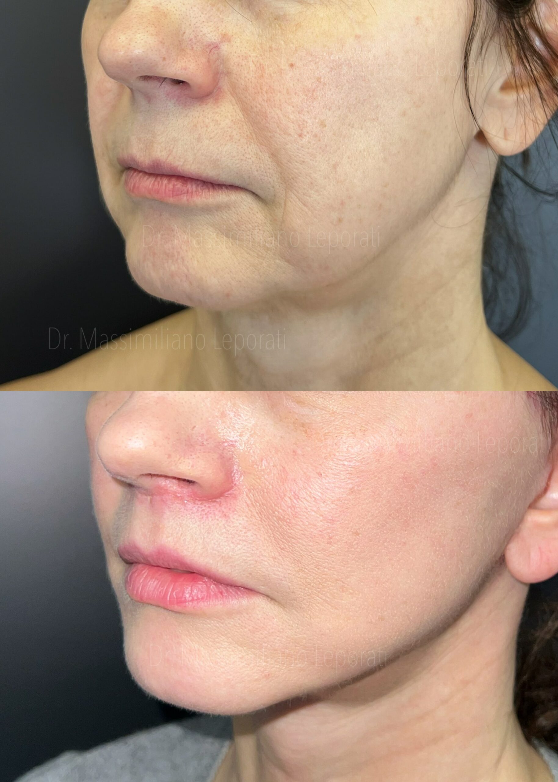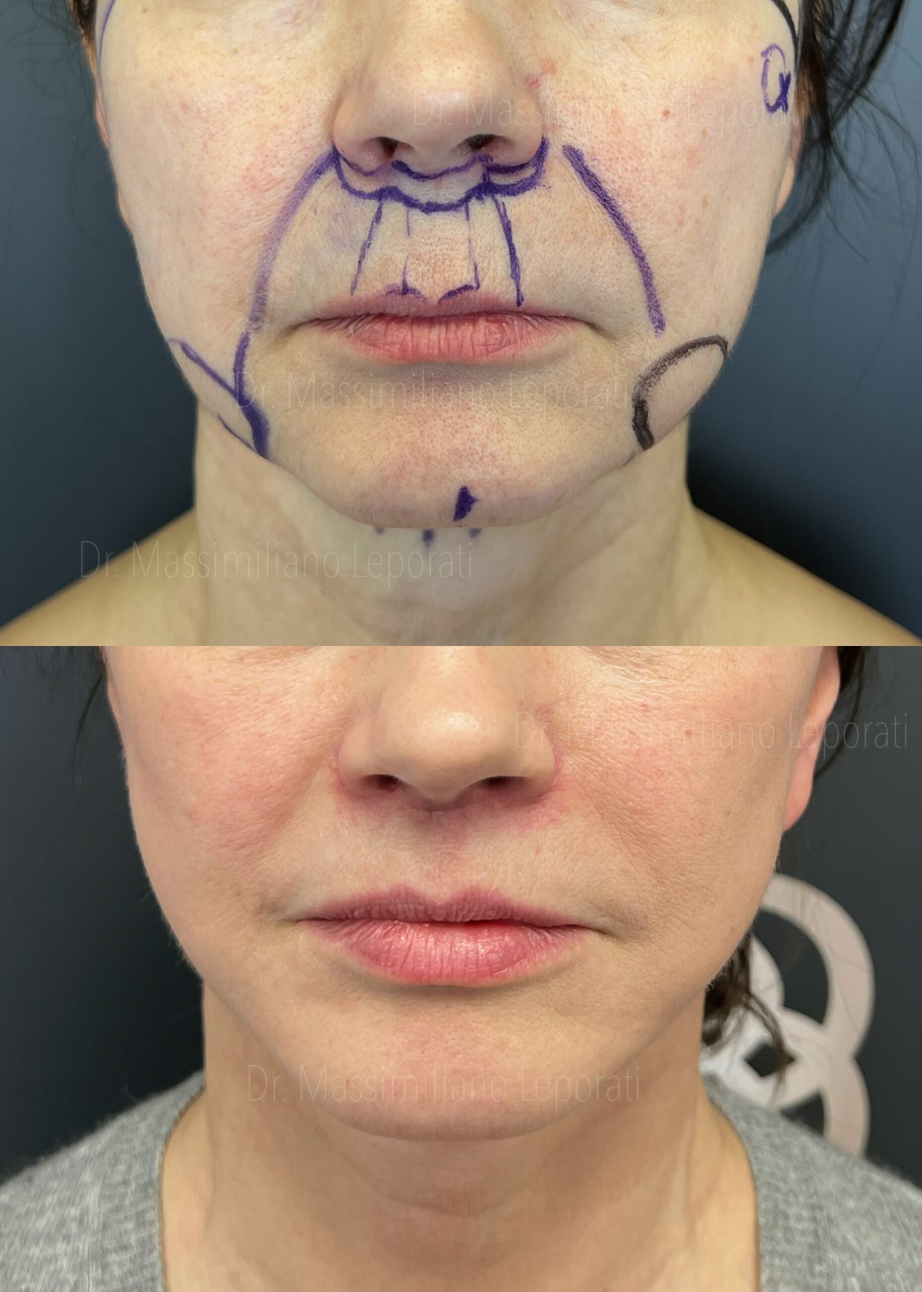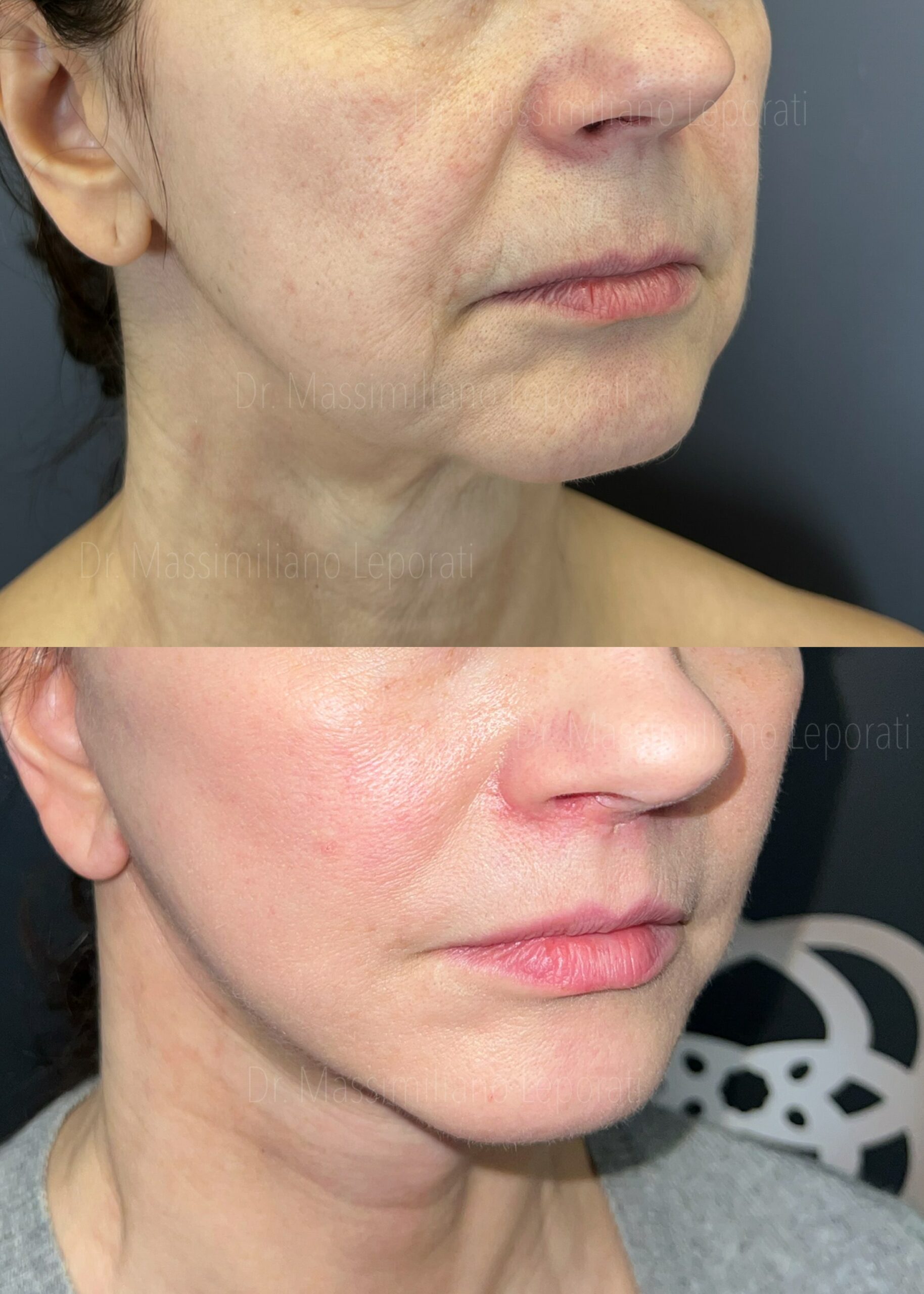 Il risultato è un labbro superiore più definito e proporzionato, che appare pieno ma non gonfio, e un’espressione complessivamente più fresca e giovanile.
